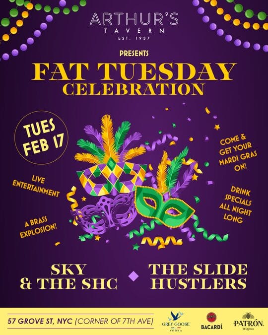 DON’T MISS IT — TUESDAY, FEBRUARY 17 • MARDI GRAS AT ARTHUR’S
